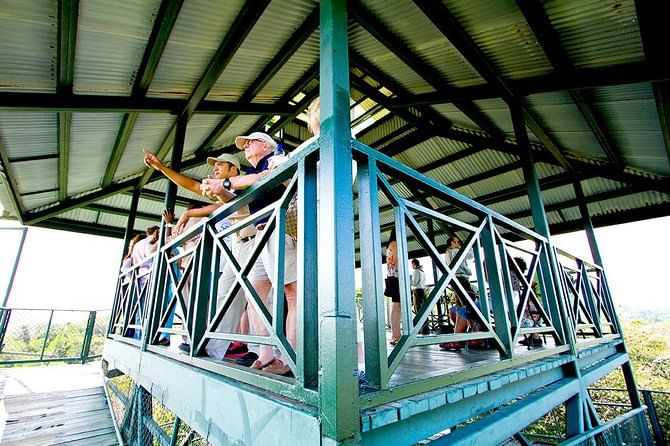 Después de un recorrido de 600 metros en el teleférico llegamos a la Torre de Observación para obtener vistas panorámicas del Parque Nacional Soberanía, el Río Chagres, el Canal de Panamá y algunos pueblos nativos Embera.